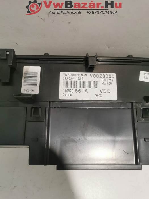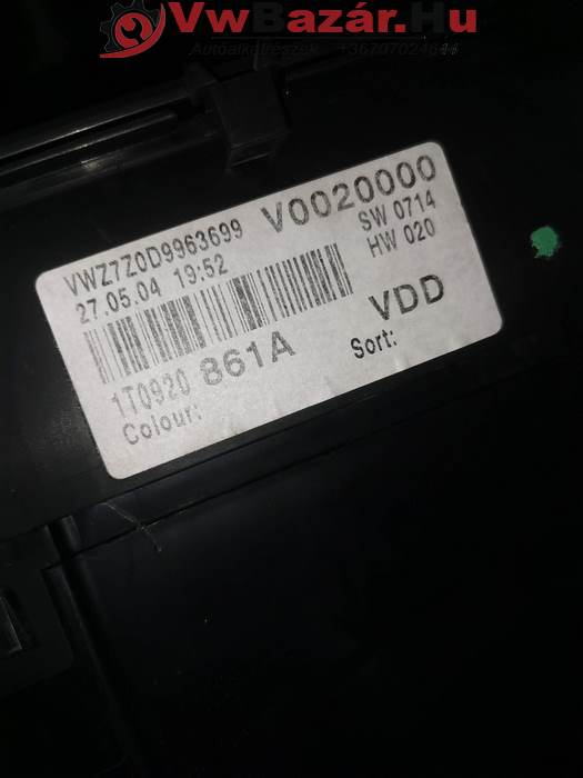Vw Touran 1.9 tdi kilométeróra, műszeregység.